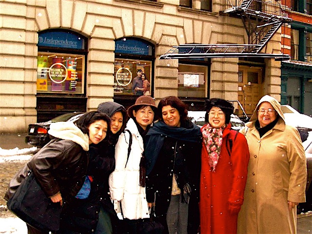 This is what a WIN UNCSW Delegation looks like - with NY snow, Emily Murase and Charilie Toledo with Japanese and Afghan Interns.