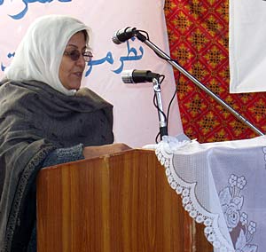 Above, Shekeba Saba Noori addresses the participants in the May 11, 2003 meeting.