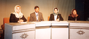 Members of the U.S. Delegation participated in a half-hour, prime time television program while in Afghanistan. Picture here are Zakia Kohzad, former Afghan journalist, Nazema Momand, who has worked with many refugees from Afghanistan who now live in the U.S., and Rona Popal who is the Executive Director of Afghan Coalition, founder and President of Afghan Women's Association International (AWAI)